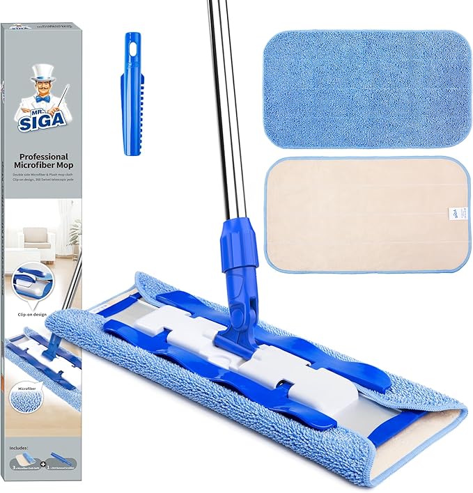 Effortlessly clean any floor with the MR.SIGA Professional Microfiber Mop. Perfect for hardwood, tile, and more! Enjoy fast shipping and a sparkling clean home! ๐งนโจ