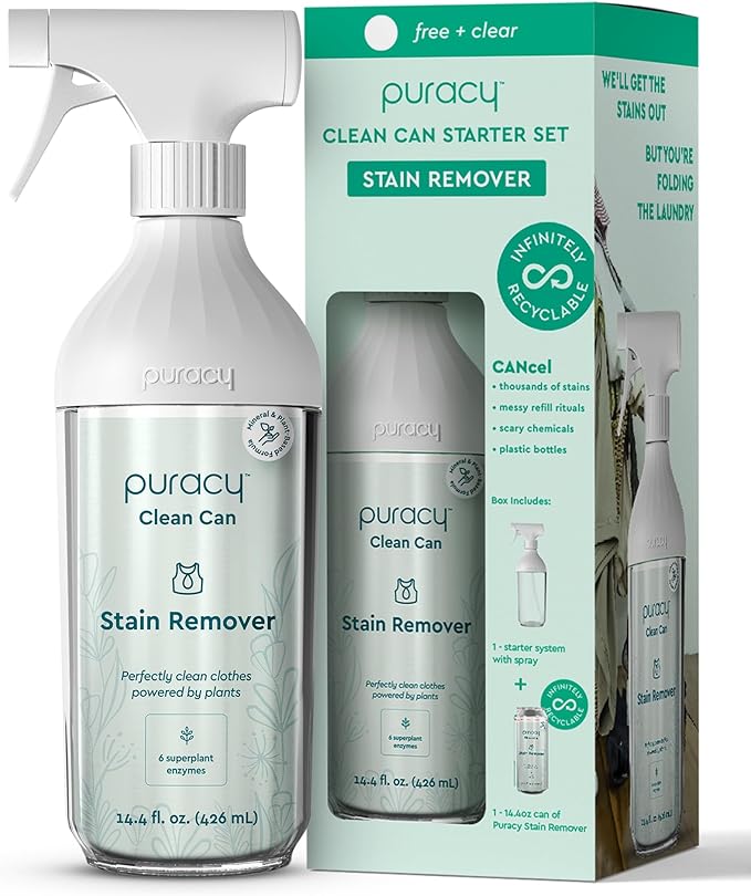 Introducing Puracy Natural Stain Remover, your new laundry staple at just $19.99! Enjoy FREE delivery for Prime members on orders over $35. This powerful fabric stain remover spray uses active enzymes to treat and eliminate stubborn stains, making it perfect for clothes of all types.