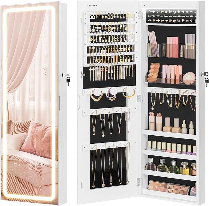 Keep your jewelry organized with the SONGMICS LED Mirror Jewelry Cabinet. Priced at $109.83 with FREE delivery on February 4. A perfect gift idea for jewelry lovers! ๐โจ